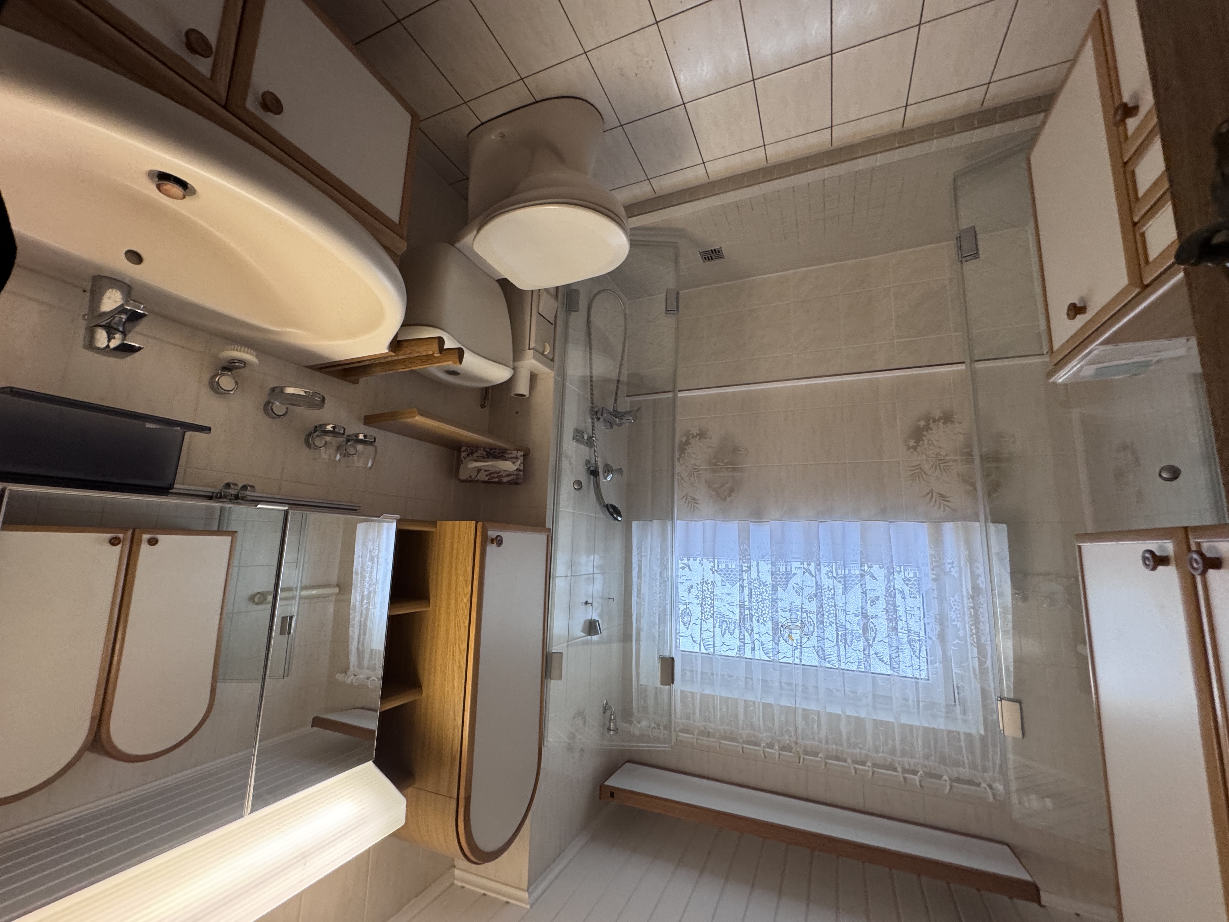 Das gepflegte Wohnensemble besteht aus zwei Mehrfamilienhäusern, die sich harmonisch in das parkähnlich angelegte Grundstück einfügen. Die Lage besticht durch ihre direkte Nachbarschaft zum Frohnauer Forst und die damit verbundene Ruhe und Naturnähe – ein ideales Umfeld für alle, die Erholung und grüne Umgebung schätzen. Die Gebäude wurden im Jahr 1970 errichtet und befinden sich in einem sehr guten und regelmäßig instandgehaltenen Zustand. In den vergangenen Jahren wurden kontinuierlich Modernisierungen und Sanierungsarbeiten durchgeführt, sodass die Anlage heute einen gepflegten Gesamteindruck bietet. Die zum Verkauf stehende Wohnung liegt im hinteren der beiden Häuser, im 2. Obergeschoss, das zugleich das oberste Geschoss bildet. Durch diese Lage genießt die Wohnung viel Licht, Ruhe und einen schönen Ausblick ins Grüne.Ausstattung